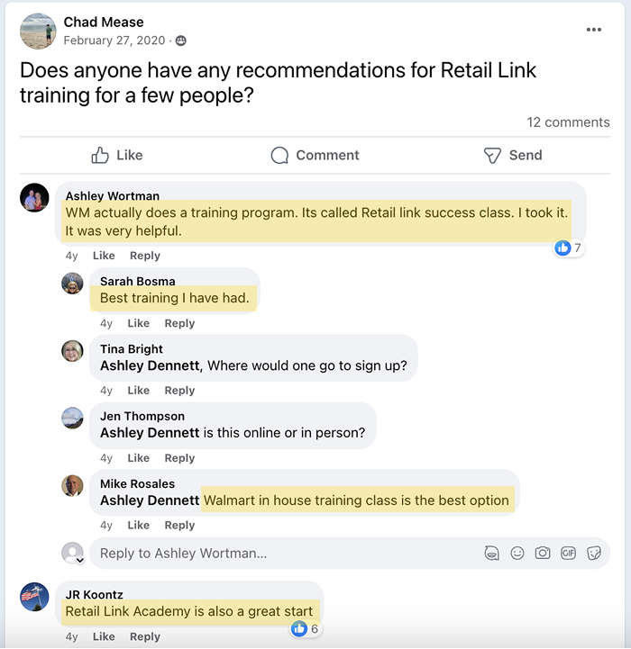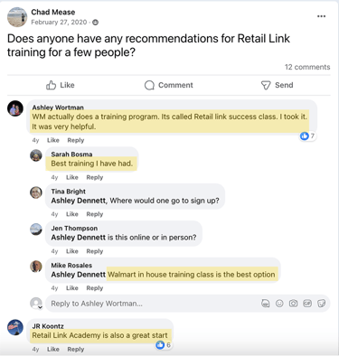 Customers are getting hooked on Retail Link in-person classes. NPS is really good.