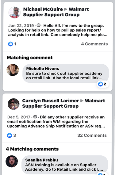 Impact assessed on a unofficial suppliers' run and managed facebook community group