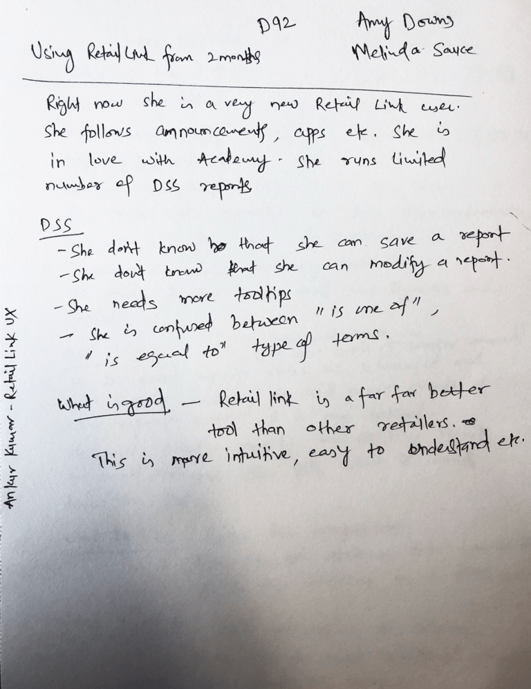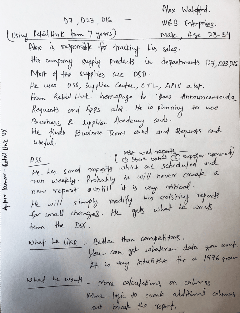 To understand our customers interact with the Retail Link tool, I met few suppliers to understand the user behaviour, their goals & needs and pain points.